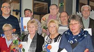 Horst Nikol und Horst Treuter zeichneten einige Mitglieder für ihre langjährige Treue mit Ehrenurkunden und Verdienstnadeln aus. Bereits 1951, also vor 65 Jahren, ist Anna Pinnes dem Sozialverband VdK beigetreten.
