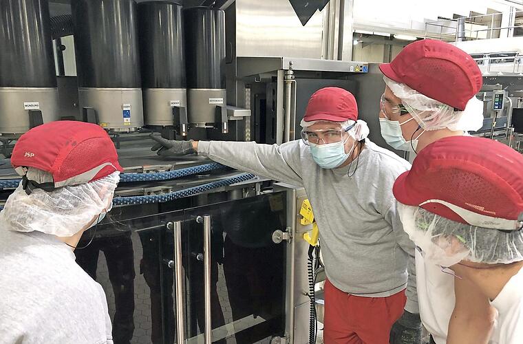 Austausch und gegenseitige Hilfe unter den Azubis sind bei Norbert Röder ausdrücklich erwünscht: Jedem Neuling stellt er einen Paten aus dem zweiten oder dritten Lehrjahr zur Seite. In 14-tägigen "Schulsitzungen" beleuchten alle gemeinsam Themen aus der Produktion in Theorie und Praxis. Über den sprichwörtlichen Tellerrand schauen sie bei Exkursionen, zum Beispiel zu einem anderen Coca-Cola-Standort, einem Zulieferer oder anderen Lebensmittelherstellern, etwa einer Käserei.
