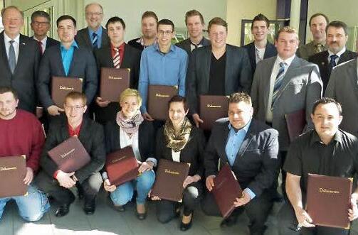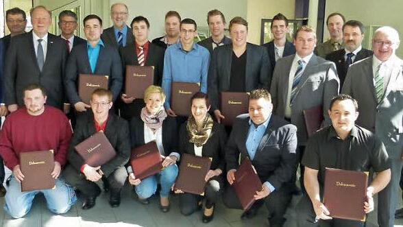 16 frischgebackene Landwirtschaftsmeister erhielten in der Landwirtschaftsschule Coburg die Abschlusszeugnisse. Als Beste schlossen Alexandra Deinlein aus Scheßlitz (Notendurchschnitt 1,14), Verena Kunick aus Sonnefeld (1,22) und Markus Huberth aus Eggolsheim (1,78) ab.
