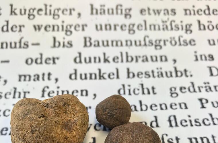Handbuch der Pharmacie: zum Gebrauche bei Vorlesungen und zum Selbstunterrichte für Ärzte, Apotheker und Droguisten" von Philipp Lorenz Geiger aus dem Jahr 1828 fand Otter eine knappe Beschreibung: Wollte der Zuchtbulle seinen Pflichten nicht nachkommen, dann mengte ihm der Bauer eine Handvoll zerstoßener Hirschtrüffel als "Brunstpulver" unter das Futter und die Kälberproduktion war gesichert. "Womöglich", sinniert ein lachender Förster Otter, "ist das Trüffelvorkommen verantwortlich für die Wildschweinschwemme in der Region".