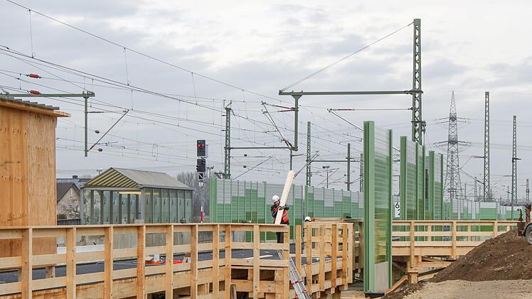 In Hallstadt wachsen die Schallschutzwände. Die werden aber noch wenig helfen, wenn im Januar wieder eine zweiwöchige Phase umfangreicher Tag- und Nachtarbeiten mit Lärmbelästigung stattfindet.
