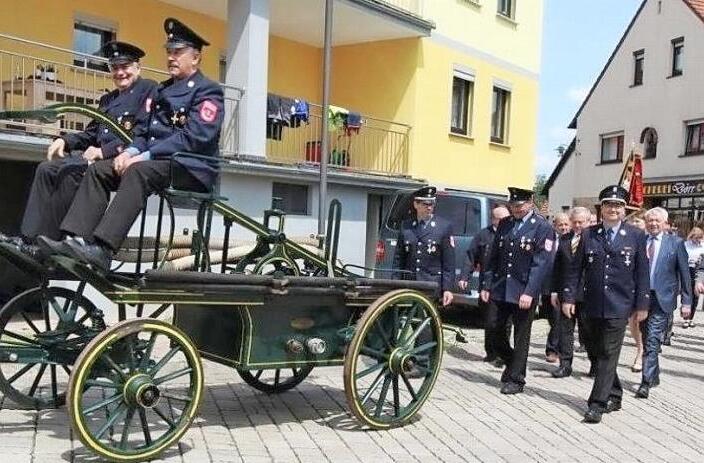 Am Nachmittag bildete der Festumzug mit 44 Teilnehmergruppen einen zweiten Höhepunkt. Noch vor den Ehrengästen führte die eigens für diesen Tag renovierte historische Handdruckspritze den Zug an. Aus dem Landkreis Bamberg und den umliegenden Ortschaften der neuen Baunach-Allianz waren die Feuerwehrtrupps angereist, in stärkster Anzahl kamen die Kameraden aus Breitengüßbach, Ebern, Hallstadt, Lauter, Treinfeld und Untermerzbach. Die Gruppe aus Priegendorf überraschte unterdessen mit einem "Versorgungsfahrzeug", das vom jüngsten Nachwuchs begleitet wurde. Den musikalischen Takt zum Marschieren gaben die Reckendorfer Musikanten und der Musikverein Stadtkapelle Baunach an.