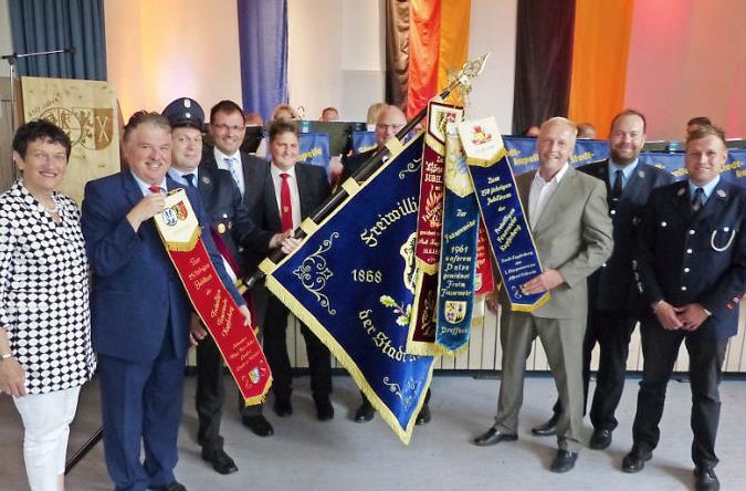 Dritter Bürgermeister Volker Matysiak heftete ein Fahnenband an die Standarte.