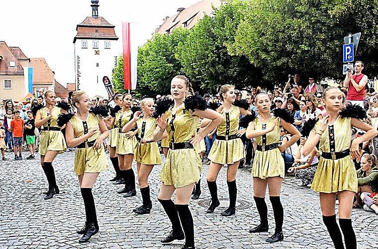 Musik und Unterhaltung gab es am Schlüsselfelder Marktplatz mit "Who's That" den ganzen Sonntag. Am Nachmittag traten zunächst zwei Tanzgruppen des TSV Aschbach auf. "Grazie", so der Name der von Nadja Fuchs geleiteten Abteilung, präsentierte sich mit ihrer Mädchengruppe und ihren ganz süßen (Nachwuchs-)Mäusen. Die Kleinsten wurden mit besonders viel Beifall belohnt.