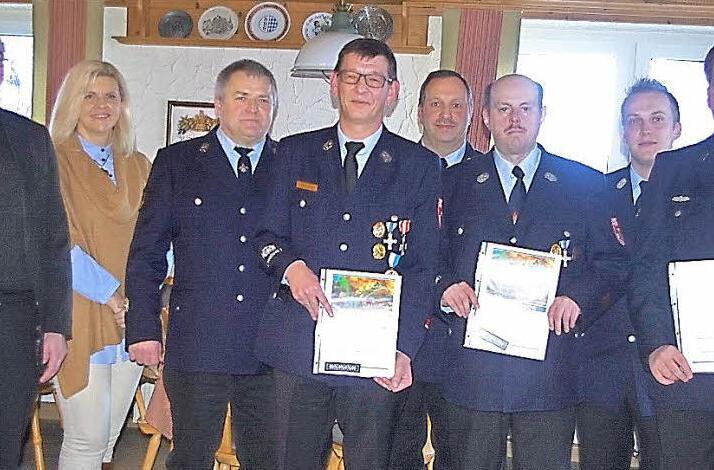 Bei der Versammlung wurden langjährige Aktive geehrt: Tim Stauch für seine zehnjährige, Andreas Peter für seine 20-jährige sowie Markus Appelius und Christian Weiß für ihre 30-jährige Dienstzeit. Aber auch der Wilhelmsthaler Feuerwehr-Chef Fischer selbst wurde geehrt für seine 25-jährigen Dienst als Kommandant. Ehrenvorsitzender Markus Appelius überreichte ihm Präsente, darunter auch eine Bilder-Collage.