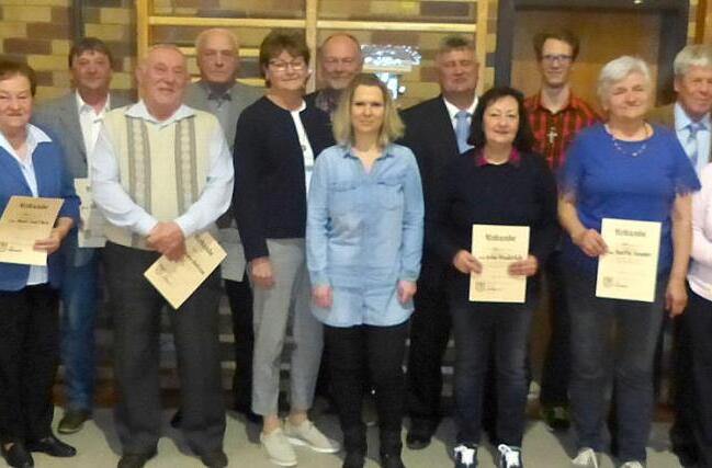 Auf 50-jährige Mitgliedschaft blicken Alwin Joseph und Peter Strömsdörfer zurück. Auf 40 Jahre Treue und Verbundenheit zu ihrem TSV schauen Karl-Heinz Fischer, Thorsten Fischer, Martha Kaupper, Erwin Tischer, Inge Tischer, Alfred Wunderlich, Erika Wunderlich und Rüdiger Zier. Für 25 Jahre Mitgliedschaft dankte der TSV Petra Assmann, Vanessa Cziganek, Carmen Gerstner, Maximilian Holtz, Dominik Steininger und Julia Täffner. Die Ehrungen nahmen gemeinsam der TSV-Vorsitzende und Himmelkroner Bürgermeister Gerhard Schneider, Zweite Vorsitzende Carmen Back und stellvertretender Bürgermeister Harald Peetz vor.