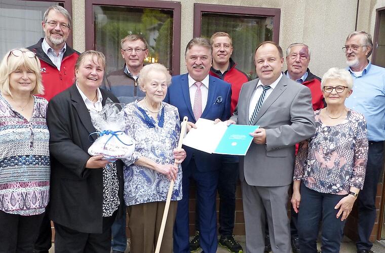 Pfarrerin Heidrun Hemme gratulierte für die Kirchengemeinde Grafengehaig. Auch Kulmbachs Landrat Klaus Peter Söllner ließ es sich nicht nehmen, der Jubilarin zum 100. Geburtstag die Hand zu schütteln.