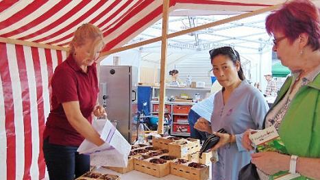 "Wie lange halten die Kirschen", wollte eine Frau wissen, als sie ein Körbchen mit richtig fränkischen, dunkelroten Kirschen gekauft hat. Sie ist extra aus Schwabach zu dem Kirschenmarkt auf den Platz der Obstgroßmarkthalle in Igensdorf gekommen, um sich über die Sortenvielfalt zu informieren und natürlich die leckere süße Frucht mit nach Hause zu nehmen.
