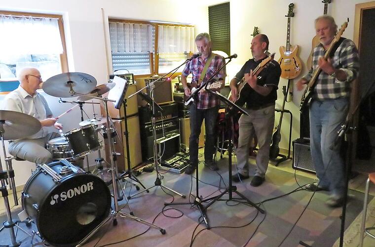 In seinem Haus in Loffeld hat Peter Bäumel ein ausgebautes Kellergeschoss, dort ist auch der Probenraum der "Groove Band" untergebracht. Einmal pro Woche spielen und proben die vier Männer hier Country, Blues und Rock, von "Wonderful tonight" bis "Country Roads", von "Alt wie ein Baum" über "Sixteen Tons" bis zum "Kriminaltango" - Musik aus den 1950er bis 1980er Jahren, bekannte und auch weniger bekannte Titel.