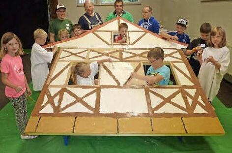 Die Verantwortlichen des Volkstrachtenvereins Neukenroth nutzten die Stockheimer Kinderferienwoche, um den Nachwuchs in die Kulissenmalerei für den Adventseinsatz mit einzubinden. Unter der Leitung von Norbert Fleischmann, unterstützt von Holger Bogdanski sowie Thorsten und Matthias Sprenger, legten sich 46 Buben und Mädchen mit großer Begeisterung mächtig ins Zeug. So glich die geräumige Zecherhalle einem überdimensionalen Maleratelier. Nach getaner Arbeit waren die Kinder mächtig stolz auf das Geschaffene.