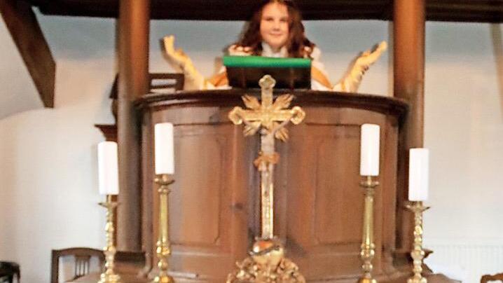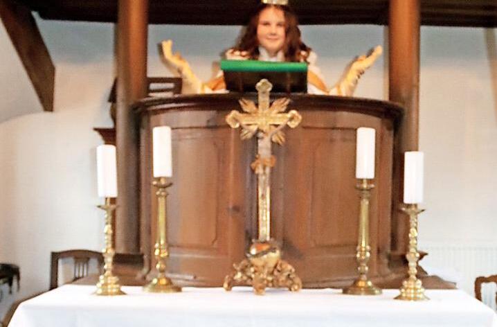 Von der Kanzel der Kapelle im Schlosspark aus wird das neue Christkind seine Weihnachtsgeschichte vorlesen. Die zehnjährige Mia Geier war schon viermal ein Engelchen und diesmal ist sie zum ersten Mal Christkind. Sie besucht die Realschule in Höchstadt und sicher werden ihre Lehrer in der Adventszeit öfters mal ein Auge zudrücken.