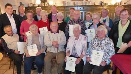 Für ihre jahrzehntelange Treue zum Frankenwaldverein wurden 21 Mitglieder geehrt. Der frühere Obmann Egon Fraas berichtete in einem kurzen Rückblick davon, wie er die damaligen Faschingsfreunde zum Wandern brachte. Auch Erika Hain erzählte von der damaligen Zeit.