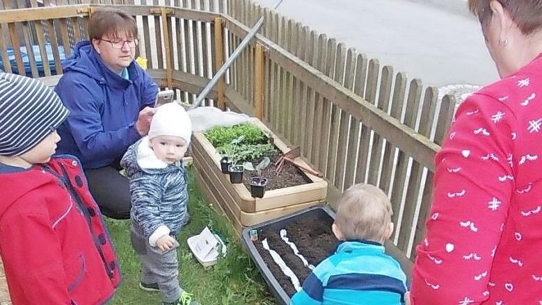 Im Nachgang zur Pflanzenbörse des Vereins für Gartenbau und Landespflege haben Mitglieder des Vereins in Pfarrweisach eine Pflanzaktion mit den Krippenkindern des Kindergartens "Pfiffikus" in Pfarrweisach vorgenommen. Sie setzten Pflanzen.