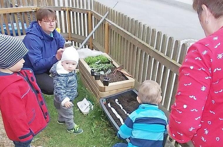 Der Verein spendete den Kindern Steckzwiebeln, Kohlrabi und Saatbänder mit Radieschen und Möhren. Mit Eifer waren die Kleinen dabei, die Erde einzufüllen und die Samen und Pflanzen in die Erde zu stecken. Den meisten Spaß hatten die Kinder beim Angießen. Vorsitzende Andrea Werner versprach, demnächst wieder mit den Kindern eine ähnliche Aktion zu planen. Mit dabei waren vom Verein Renate Heusinger und von der Krippe die Erzieherin Marion Schleicher.