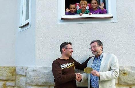"Meine Schwiegermutter Edith Sollmann hat von Anfang an Hand mit angelegt", sagt dankend Thorsten Kotschy. Es wurde viel Eigenleistung erbracht, und die Handwerker, so Kotschy, hätten feinfühlig und professionell gearbeitet. Da hätten sogar die Nachbarn gestaunt, die immer wieder ungläubig stehen geblieben seien und Beifall zollten. "Der Bauherr ist jeden Tag wie aufgezogen rumgerannt", meinte eine der Nachbarinnen, Käthe Rei ßenweber.