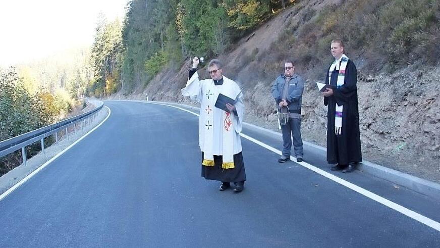 Veronika Schadeck Mit der Verkehrsfreigabe der Gemeindeverbindungsstraße von Schnappenhammer nach Wolfersgrün wurde die schnellste Verbindung von der B 173 aus zu dem Wallenfelser Gemeindeteil geschaffen. Und, so brachte es Pater Jan Poja am Freitagmittag auf den Punkt: "Es wurde ein wunderschönes Stück Natur erschlossen!"