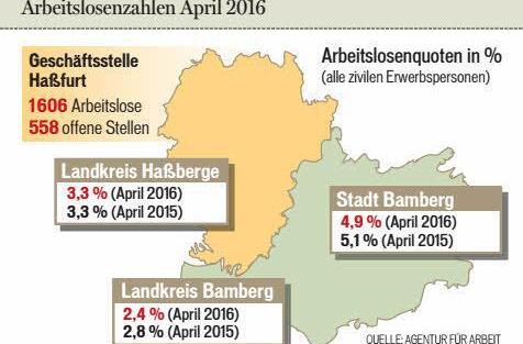 Die Arbeitslosigkeit im Kreis Haßberge hat sich von März auf April dieses Jahres um 152 Personen auf 1606 Erwerbslose verringert. Diese Zahlen veröffentlich...