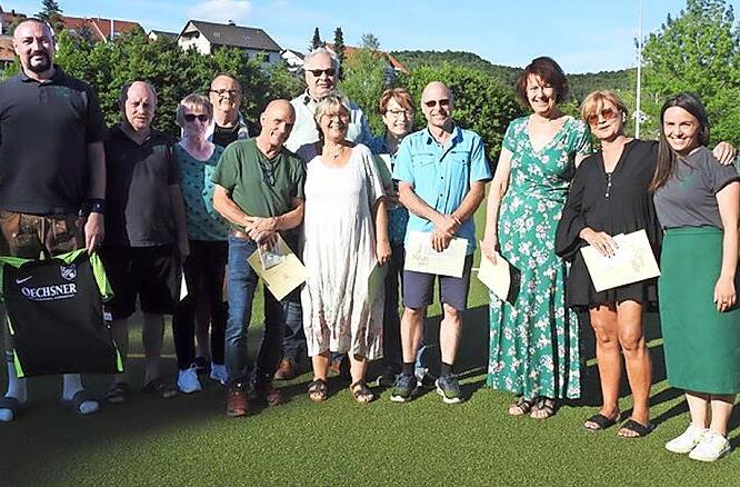 Zudem hatte der Vorstand im Vorfeld entschieden, dass besonders verdiente Mitglieder, die dem Verein seit Jahren ehrenamtlich als Übungsleiter und Übungsleiterinnen zur Verfügung stehen, die Platzpflege übernehmen oder bei Elektro- und Hausmeisterarbeiten, Finanzangelegenheiten und Veranstaltungsorganisation dem Vorstand zuverlässig beistehen, zu Ehrenmitgliedern ernannt werden. "Für euch ändert sich im Prinzip nichts. Wir brauchen euch auch weiterhin in voller Stärke", scherzte Präsident Holger Buczynski, während er die Ehren-Urkunden mitsamt Einkaufsgutschein für die ortsansässige Bäckerei übergab.
