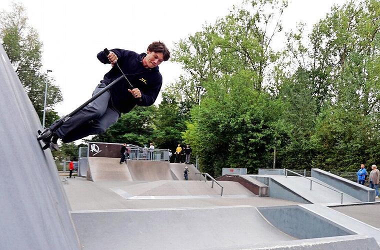 Die Alleskönner auf Rollen gaben sich im Rahmen der "AO Scooter Back to School Tour" wieder ein Stelldichein am Skatepark auf der Nutzung und zeigten halsbrecherische Sprünge.