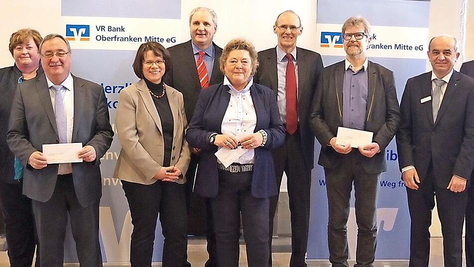 Sehr freute sich Möhrle, auch dieses Mal wieder eine Reihe von Schulen im Landkreis unterstützen zu können. Aus dem Spendentopf erhalten sowohl die beiden Kronacher Gymnasien als auch die beiden Realschulen je eine Spende über 1500 Euro. Weiterhin dürfen sich die Mittelschulen Kronach, Pressig und Windheim über die gleiche Spendenhöhe freuen - ebenso wie auch die private Sabel Fachoberschule in Kronach. Die Spenden wurden von den Leitern der jeweiligen Schulen oder deren Stellvertretern entgegengenommen - so Oberstudiendirektorin Renate Leive (KZG), Oberstudiendirektor Harald Weichert (FWG), Realschuldirektorin Christa Bänisch (RS I), 2. Realschulkonrektor Steffen Rost (RS II), den Rektorinnen Anita Dauer (Mittelschule Kronach), Andrea Paschold (Grund- und Mittelschule Windheim) und Rektor Reinhard Horn (Grund- und Mittelschule Pressig) als auch Schulleiter Klaus Marr (FOS Kronach).