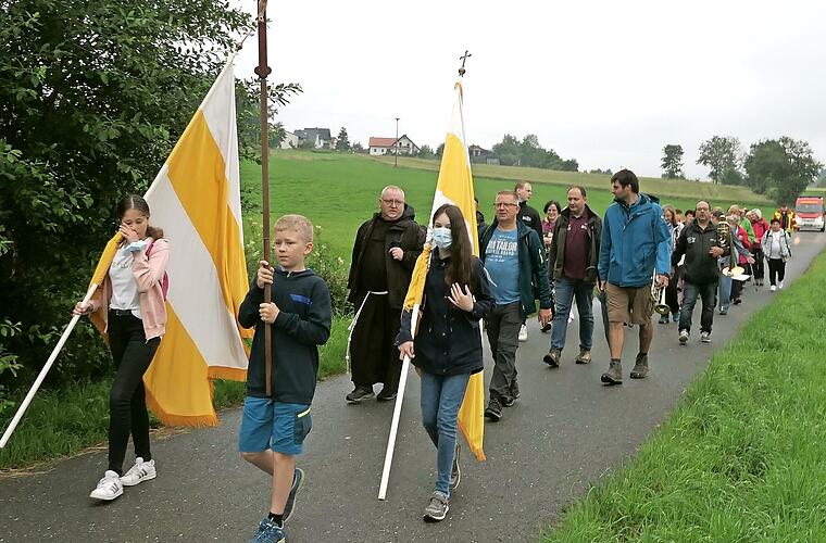 Versehen mit dem Pilgersegen zogen die Wallfahrer von der St.-Bartholomäus-Kirche in Marktleugast über Mannsflur und Hermes zur Achatzmühle und weiter nach Marienweiher. Begleitet wurden sie vom Musikverein Marktleugast unter der Leitung von Georg Purucker.