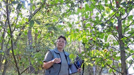Bei seinen Vorgesetzten in der Waldwirtschaft stieß Eberhard Anding zunächst auf wenig Gegenliebe für seine Ideen. Also begann er, Arten wie den Baumhasel auf dem eigenen Land anzupflanzen - und konnte wenige Jahre später feststellen, dass frühere Skeptiker auch damit begannen. Doch mit einer Art war er nicht zufrieden. Beim Gang durch seinen Wald zeigt er hier auf eine Elsbeere, dort auf einen Speyerling und wenige Schritte weiter auf eine Mehlbeere.