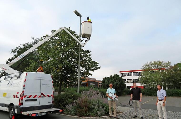 "18 Ortsteile - das Gemeindegebiet ist groß, das sind viele Kilometer", rechnet Bernd Lippert von Bayernlicht vor. Es wird in zwei Teams mit zwei Fahrzeugen gearbeitet, 60 bis 80 Lampen sollen an einem Tag umgerüstet werden. In einem festgeschriebenen Turnus sollen dann Kontrollen stattfinden, die Prüfung der Leuchten allgemein und der elektrischen Anschlüsse im Besonderen. Letztes Jahr wurde der Beschluss zur Umrüstung im Ebensfelder Gemeinderat gefasst. Das Auftragsvolumen beträgt um die 430 000 Euro, so der Dritte Bürgermeister Anton Schatz. Durch die lange Lebenszeit der Leuchtmittel - 20 Jahre bei etwa 4100 Nachtstunden ergäben mehr als 80 000 Leuchtstunden, rechnet er vor - und durch den deutlich geringeren Stromverbrauch würde die Gemeinde dauerhaft ihre Kosten reduzieren.