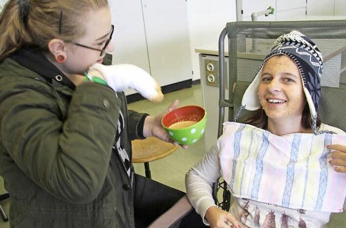 Der Höhepunkt der Aktionswoche allerdings war Tag drei mit den Themen Entspannung, Wellness und Stressbewältigung. Denn die Jungen und Mädchen rührten im Physikraum Karotten und Gurkenmasken an - und trugen sie sich gegenseitig auf.