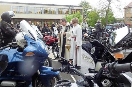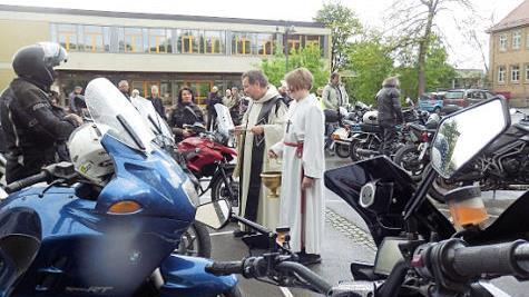 Erhardt segnete die Motorräder. Die Biker machten sich zu einer Ausfahrt auf den Weg. HB