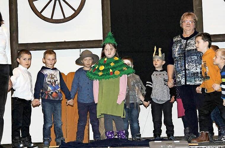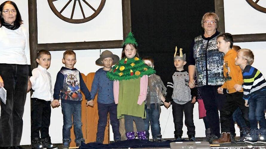 Pfarrerin Heidi Reith erzählte aus "Die Wunder zu Weihnachten" eine Geschichte vom "doppelten Weihnachtsmann", dessen Besuch jede Menge Aufregung mit sich brachte. Eine Überraschung der etwas anderen Art hatte die Erzähl- und Vorlesegruppe vom evangelischen Kindergarten "Kleine Welt" vorbereitet. Die Jungen und Mädchen präsentierten die Geschichte vom Bäumchen, das andere Blätter haben wollte und luden abschließend zum gemeinsamen Singen mit "O Tannenbaum" ein.
