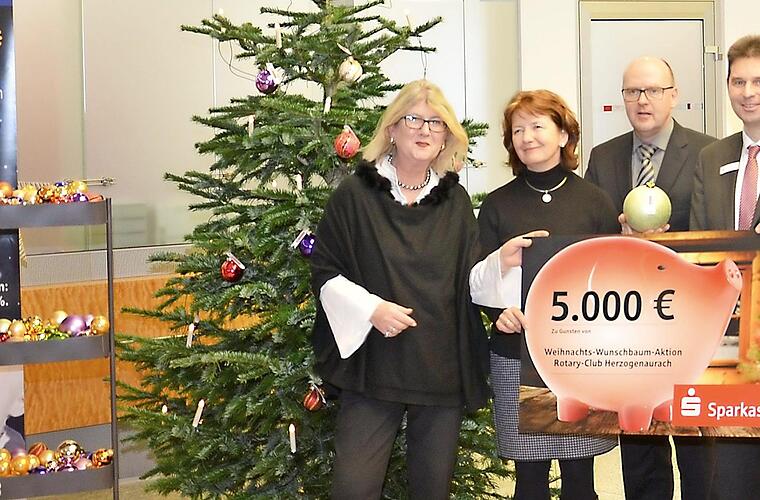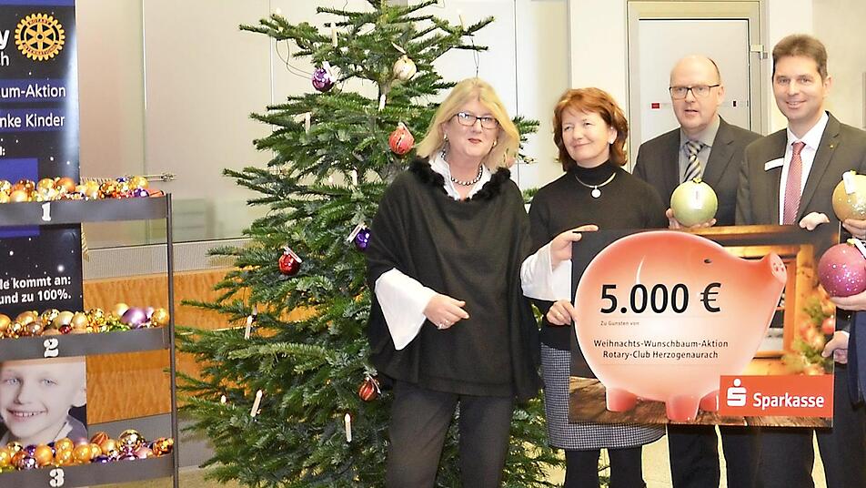 Die Rotarier laden die Bevölkerung zur großen Weihnachts-Wunschbaumaktion in die Kundenhalle der Sparkasse Herzogenaurach ein. Sie steht unter der Schirmherrschaft von Staatsminister Joachim Herrmann, der Erlös geht zugunsten des gemeinnützigen Vereins "Toy Run - Träume für kranke Kinder Erlangen".