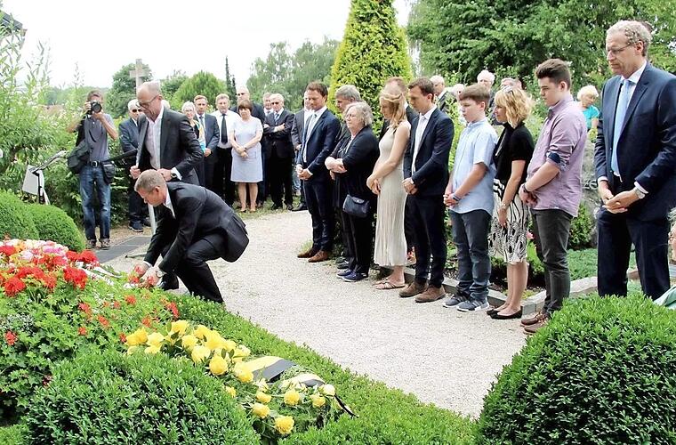 An der Gedenkeier am Familiengrab auf dem alten Friedhof nahm mit Sigrid auch die jüngste Tochter von Käthe Dassler teil, dazu eine Reihe von Enkeln und Urenkeln. Käthe Dassler war eine geborene Martz aus Pirmasens, und Bürgermeister German Hacker (SPD) konnte auch Angehörige aus Pirmasens begrüßen. Von der Firma Adidas kamen Harm Ohlmeyer, Finanzchef und Mitglied des Vorstands, sowie Chefjurist Frank Dassler und Pressesprecher Oliver Brüggen.
