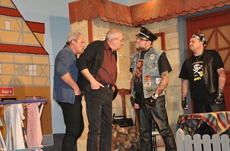 Der unterhaltsame Dreiakter, den Regisseur Johannes Schmitt treffend in Szene gesetzt hat, lebt von einem misslungenen Lauschmanöver, das die turbulente Verwechslungskomödie so richtig in Fahrt bringt. Der vermutete Urlaubsbesuch des Bischofs - samt Mesner - im leer stehenden Nachbarhaus bringt das stereotype Dorfleben gehörig aus dem Gleichgewicht. Als sich die vermeintlichen Würdenträger Ludwig Bischof (Gerhard Hofmann) und Klaus Mesner (Leo Hühnlein) als Rocker entpuppen, die mit der Kirche gar nichts am Hut haben und knatternd auf "Motorrädern" ins Pfarrheim rauschen, fallen dem Fähnchen schwingenden Empfangskomitee alle Kinnladen herunter.