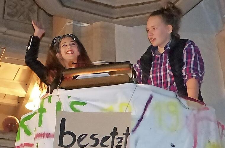 Die Besucher des Familiengottesdienstes in der gut gefüllten St.-Oswald-Pfarrkirche erlebten ein ungewöhnliches Krippenspiel der Konfirmanden. Zwei Obdachlose hatten sich auf der Kanzel einquartiert, da sie sonst keinen Schlafplatz im Ort gefunden hatten.