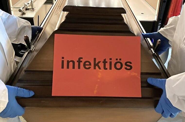 Jochen Gleißner hofft, dass sich die Lage irgendwann wieder ganz entspannt. An den Dezember und die erste Hälfte im Januar denkt er ungern zurück. "Da war die Situation schon ein bisschen dramatisch", erzählt er, der zwei Kühlräume auf seinem Betriebsgelände unterhält. "Obwohl wir normalerweise nur einen Kühlraum brauchen, waren in dieser Zeit beide voll ausgelastet." Jeder zweite Sarg war mit einem roten Zettel markiert: "Infektiös" stand darauf in großen Lettern.