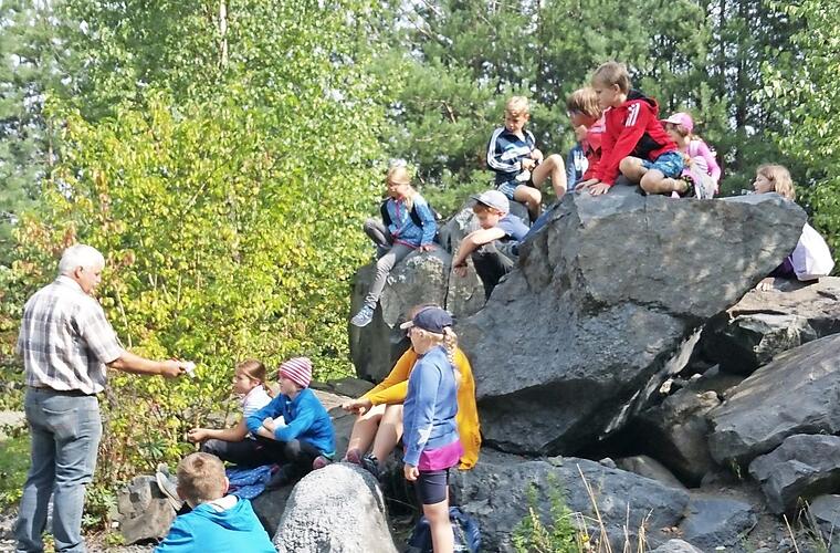 Einmal quer durch den Landkreis führte die Fahrt - und zehntausend Jahre zurück in der Erdgeschichte. Steinmetzmeister Hans Albert war prädestiniert dafür, den Kindern zu erklären, wie es dazu kam, dass am Zeilberg in Maroldsweisach Basalt abgebaut werden kann.