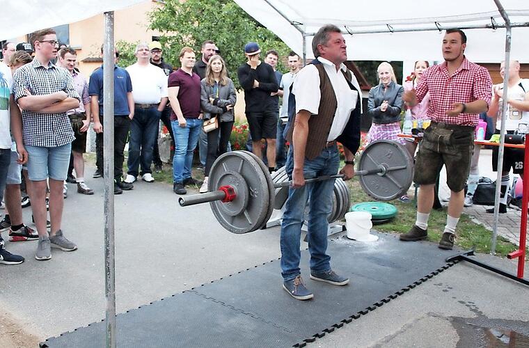Auch Brunneckers Stadtratskollegen Rudi Dück und Hans Schott traten an und brachten 120 Kilo hoch. Viel Kraft und Durchhaltevermögen zeigten Stefan Hümmer und Christian Vojer von der Freiwilligen Feuerwehr.