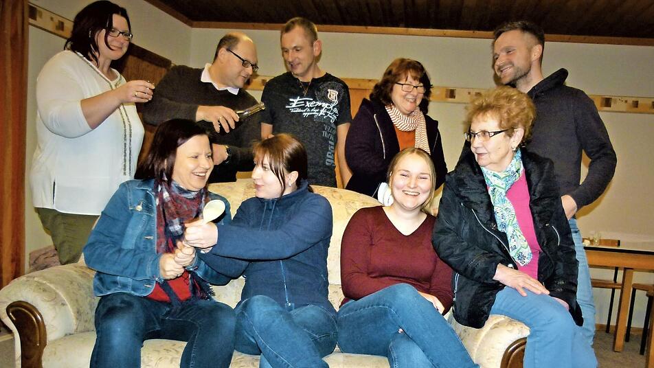 Seit Wochen proben die Akteure der Theatergruppe des Gartenbauvereins Lanzendorf im Vereinsheim des Kleintierzüchtervereins Himmelkron, damit die Premiere am 28. März ein Erfolg wird. Mitten drin Vorsitzende Linda Fischer, die mit ihren 80 Jahren immer noch vorausgeht, organisiert und auch Regie führt. Die Laienspieler hören auf "ihre Linda", die diesmal den Schwank "Wer nicht hören will, muss fühlen" ausgesucht hat.