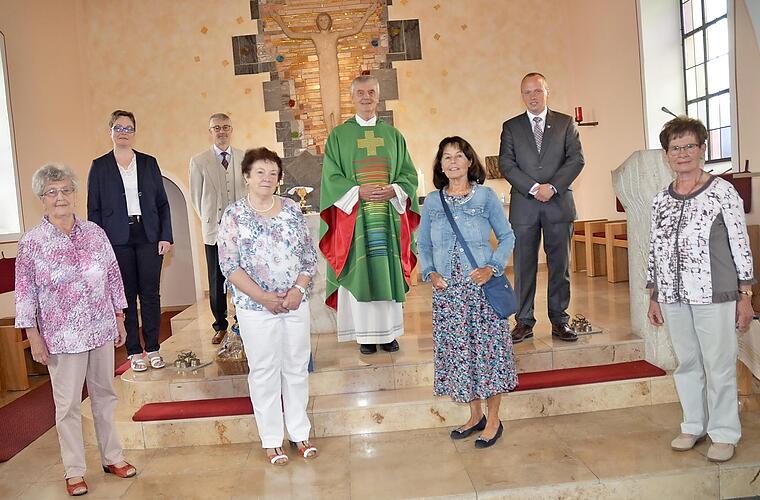 Pfarrgemeinderatsvorsitzende Marion Büttner gratulierte dem Jubilar im Namen der Kirchenverwaltung und Kirchengemeinde Kehlbach sowie seiner vier ehemaligen Schulkameradinnen und dankte dem Geistlichen für seine heute noch große Treue zu seinem Heimatort Kehlbach, in dem er viel Gutes bewirke.