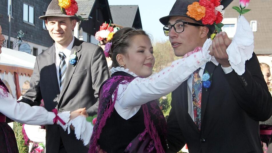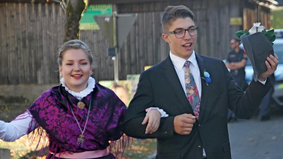 Veronika Schadeck Sechs Zechpaare und zwei Kellner begeisterten am Sonntagmittag bei strahlendem Sonnenschein mit ihrem Trachtenaufzug und dem Plantanz sowohl die Besucher als auch die Einheimischen. Unter den Ehrengästen waren auch Landrat Klaus Löffler und Bürgermeister Thomas Löffler, die sich über den Erhalt der Kirchweihtradition freuten.