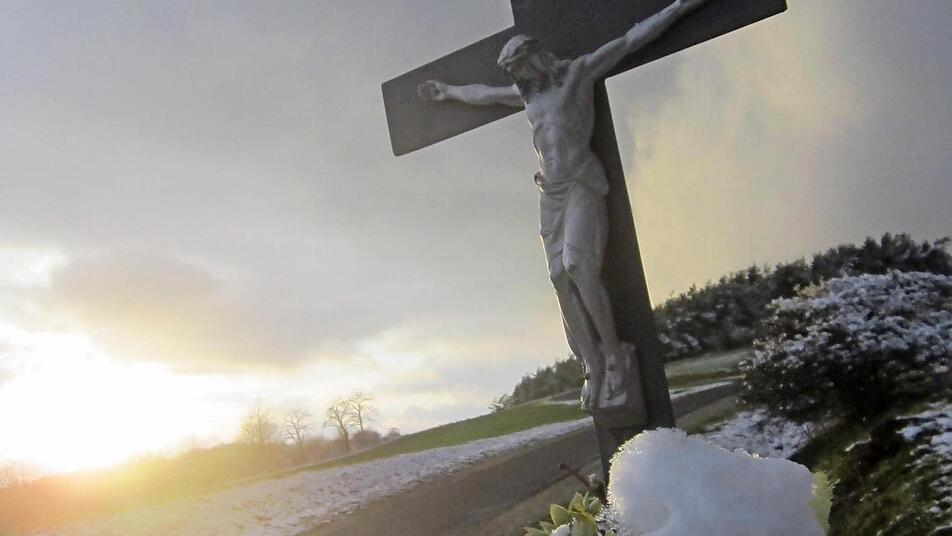 Unvorhersehbar war dieser Wintereinbruch auch für den Fotografen dieser Bilder: Als er gerade bei Dörrnwasserlos ein Feldkreuz im Gegenlicht mit beeindruckender Wolkenformation einfangen wollte, kam Wind auf - und eine Bö warf eine Handvoll Pulverschnee direkt aufs Objektiv, sodass es im Sucher zunächst einmal zappenduster wurde.