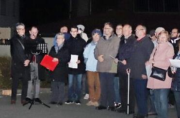 Auf Einladung von Pfarrer Thomas Ringer, Pfarrer Jens Arnold und Bürgermeister Karsten Fischkal (FW) versammelten sich viele Bürger am Gedenkstein für die Juden, um sich in Gebeten, Liedern und Lesungen an die Opfer zu erinnern.