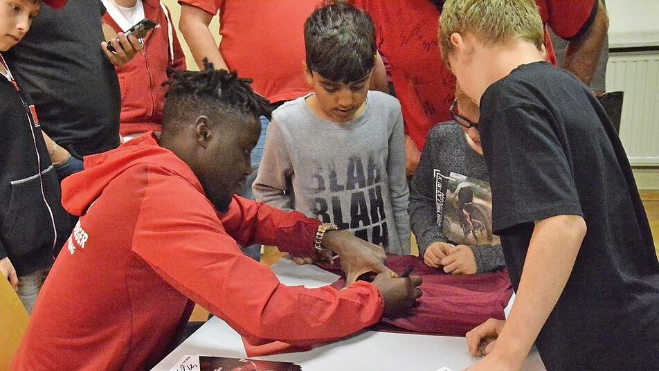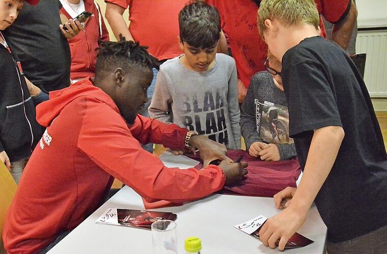 Karl Teplitzki, ehrenamtlicher Fankoordinator, erklärte, für ihn seien die 6393 Mitglieder des Fanbezirks wie eine große Familie, wo man immer wieder gerne hingehe. Inzwischen konnte Hahn die Delegation aus Nürnberg mit Aufsichtsrat Christian Ehrenberg, Jürgen Bergmann als Leiter der Fanbetreuer und den Clubspieler Edgar Salli begrüßen.