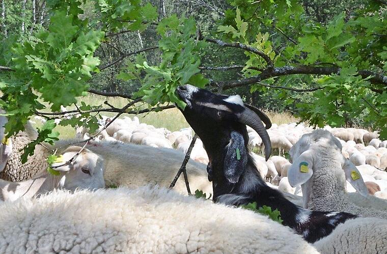 Vielfach übernehmen schon Schaf- und Ziegenherden das Freihalten der Flächen. Dass auch Ziegen in den Herden mitgeführt werden, ist wichtig, weil sie auch Pflanzen fressen, die Schafe stehen lassen würden. Doch wo die Verbuschung bereits zu weit fortgeschritten ist, können auch Ziegen nicht mehr Herr werden.
