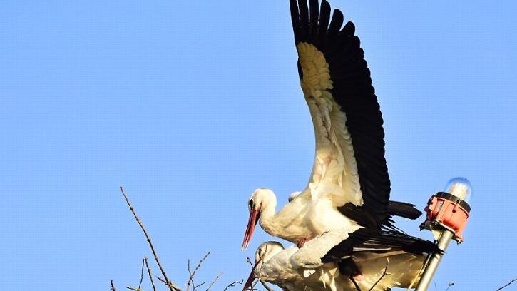 Den Ausleger eines Krans wählte ein Paar für den Nestbau in Pommersfelden.