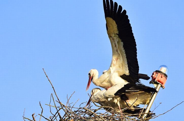 Dabei sieht man der Behausung in schwindelerregender Höhe die Eile an, in welcher sie vermutlich während der Osterfeiertage und dem Stillstand des Krans errichtet wurde. Diese Zeit der Ruhe auf der Baustelle nutzte das Storchenpaar, um sich auf dem Kran häuslich einzurichten und dem böigen Wind der letzten Tage und dem wackligen Untergrund zu trotzen.