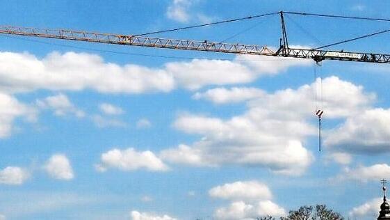 Stummer Protest gegen Wohnungsnot in Pommersfelden? Oder Freude am ganz besonderen Wohnsitz? Herr und Frau Adebar haben im Ort offensichtlich kein anderes Zuhause gefunden als die Spitze des Krans an der Brückenbaustelle. Es könnte natürlich auch sein, dass sie nur höher hinaus wollten als die Störche in den Nachbarortschaften. Jedenfalls sind sie eifrig dabei, eine Familie zu gründen.