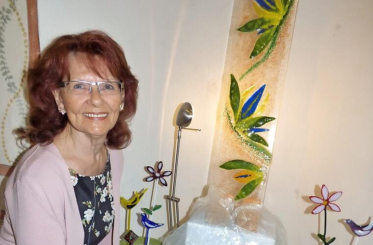 Besonders beachtenswert sind die neuen Glasfusing-Arbeiten der Waischenfelder Künstlerin Elvira Gerhäuser, die in der Turnhalle des "Gerhauses" nun eine Glasfusing-Werkstatt betreibt. Dort entstehen im Glasschmelzverfahren leuchtende Glasskulpturen, die man in den Garten stellen kann, Glasschmuck und Dekorationsgegenstände. Wie Gerhäuser sagt, möchte sie diese Technik bekannter machen.