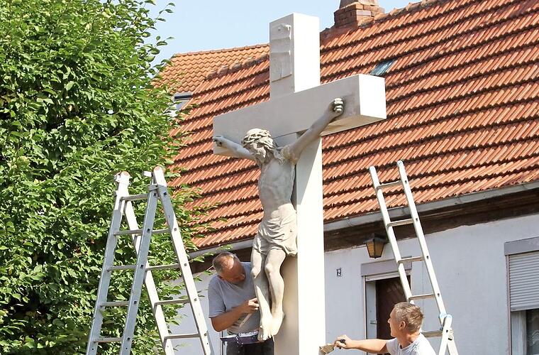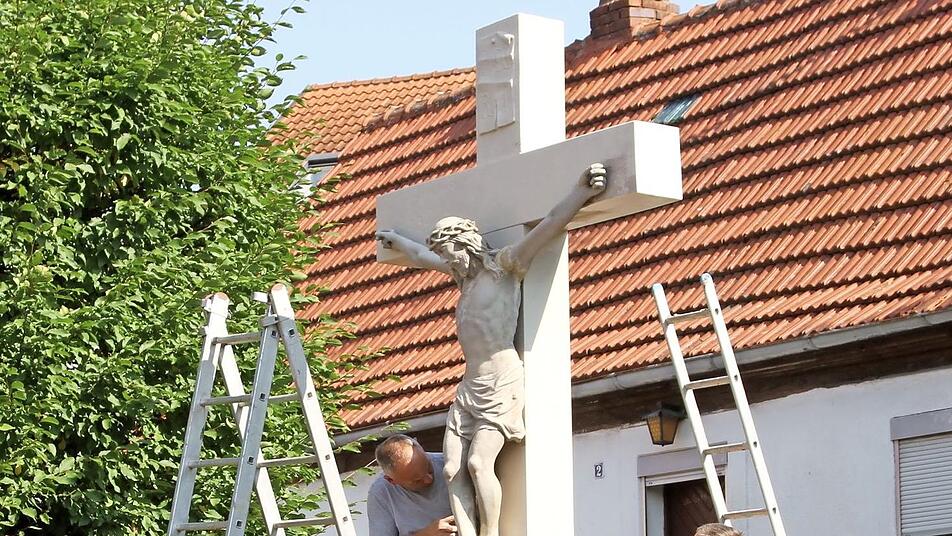 Auch wenn Kreuz und Korpus aus weißlichem Burgpreppacher Sandstein bestehen, waren die Jahrzehnte nicht spurlos an ihm vorübergegangen und eine Sanierung des Wegkreuzes war dringend notwendig gewesen. Am Samstag, 15. September, findet die Einweihung statt.