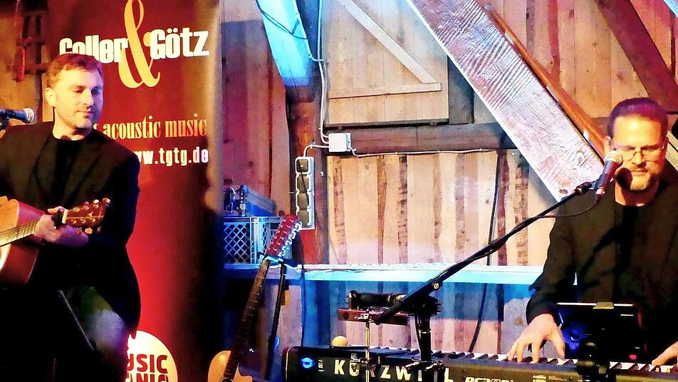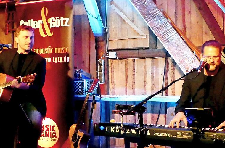Zwei Männer, eine Gitarre, ein Piano - das ergibt Goller & Götz. Die beiden oberfränkischen Musiker, Thomas Goller mit der Gitarre plus Mundharmonika, und Tom Götz am Piano spielen und singen im intimen Rahmen des Stadls zeitlose und ergreifende Pop- und Rocksongs der vergangenen 50 Jahre und von heute.